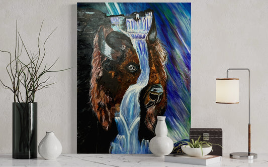 Buffalo Spirit Animal Oil Painting - Original Wildlife Art